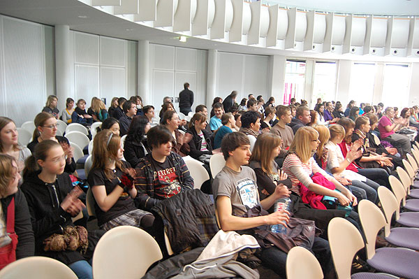 Am Samstag, dem 27.2.2010 fand am Elisabeth-Gymnasium zum wiederholten Mal die Berufsfindungsbörse statt. Dieser Tag wurde von der Elternschaft vorbereitet und mit Unterstützung von Lehrern durchgeführt. Vor Ort unterstützt Herr Kussmann die Eltern in der Organisation. In diesem Jahr wurden wieder sehr unterschiedliche Berufsbilder vorgestellt. Im Foyer präsentierten sich u.a. soziale Einrichtungen. Diese warben für die Teilnahme an einem freiwilligen sozialen Jahr. An anderen Ständen stellten sich Hochschulen vor. Vereine warben für einen Auslandsaufenthalt. Die Beteiligung der Bundeswehr an der Berufsfindungsbörse wurde von 5 Mitgliedern der DKP in einer friedlichen Demonstration vor dem Schulgebäude kritisiert. In einer Sendung des Lokalsenders Radio Corax wurde die Teilnahme der Bundeswehr ebenfalls kritisch hinterfragt (siehe Link zum Podcast am Ende). Einer der Kritikpunkte ist dabei, dass bereits 17jährige den Dienst in der Bundeswehr antreten. Dies verstoße gegen die UN Kinderrechtskonvention. [Kra, 27.2.2010] Weiterführende Infos:- Interview zur Berufsfindungsbörse Radio Corax Weitere Aktionen: - - Artikel kommentieren | ||||||||||||